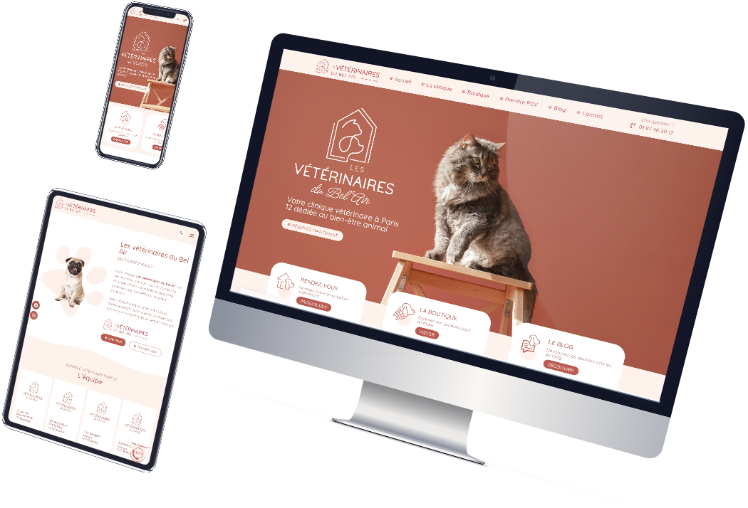 Une mission annexe en SEO a également été menée. Les performances sont excellentes : mis en production en février 2024, le site affiche, huit mois plus tard, une 4ᵉ position pour les termes concurrentiels « clinique vétérinaire Paris 12 » et « vétérinaire Paris 12 ».